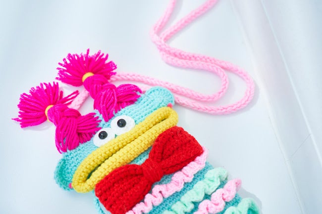 浴衣にも合う!夏祭りや花火大会に連れて行きたい、レトロ可愛い毛糸のスマホポーチ「ハイカラ」