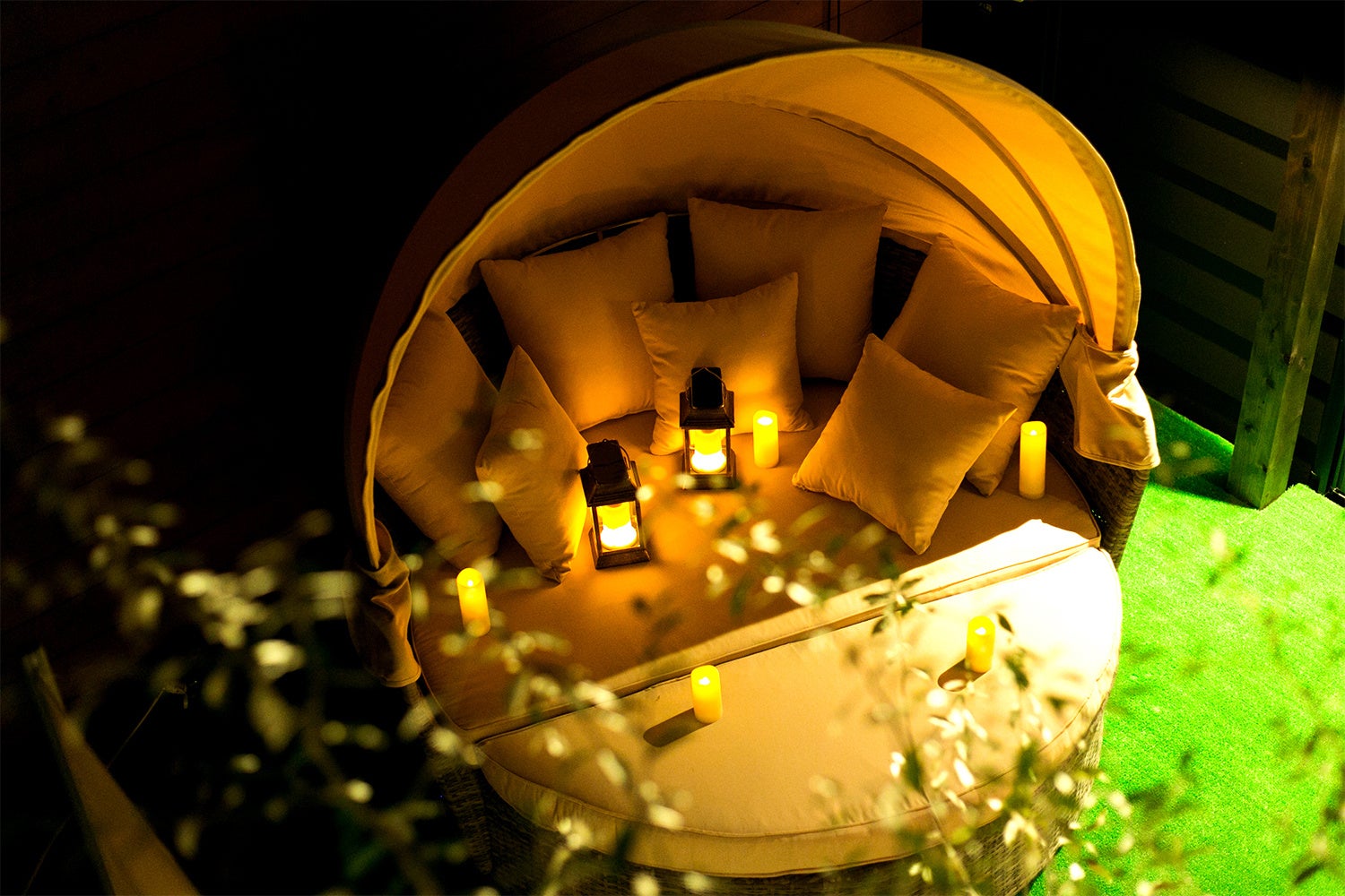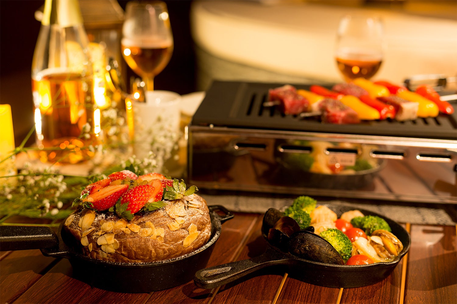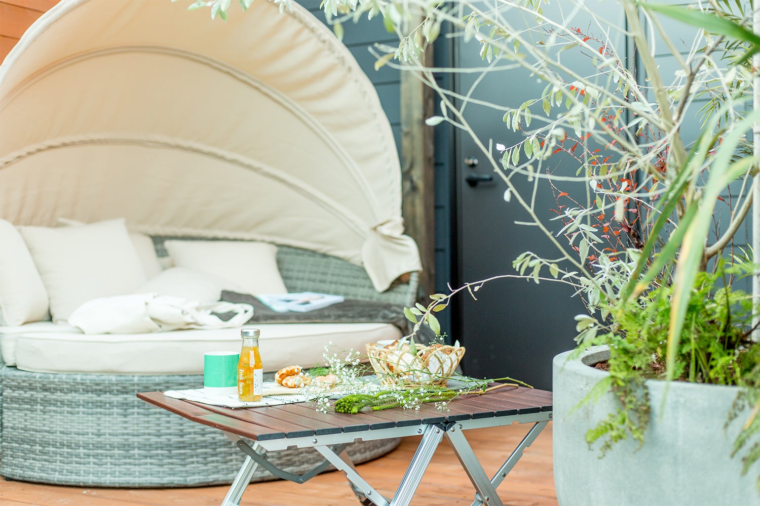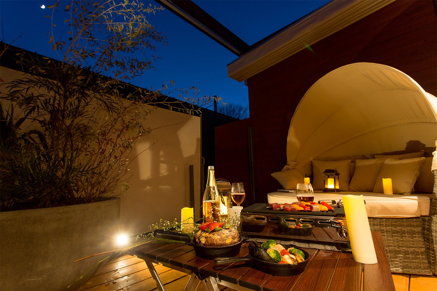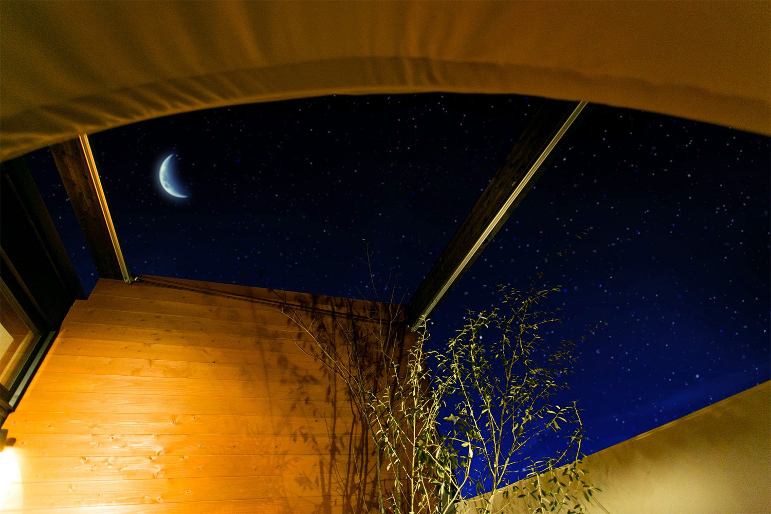 プライベートガーデンを覆うシェードを開ければ星空を眺めつつ心地よい夜風に憩うなど、プライベート空間に居ながらも富士河口湖の自然を身近に感じる豊かなひとときをお楽しみ頂けます。