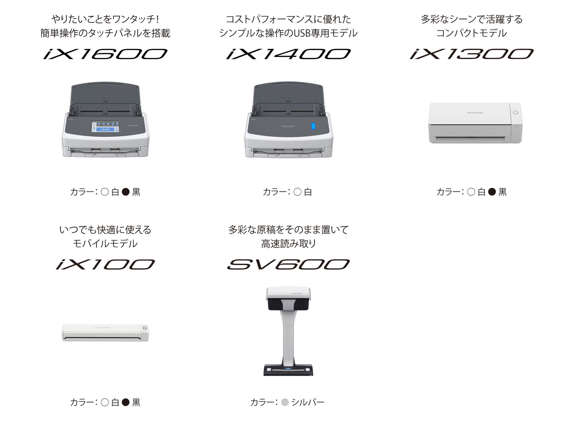 ・販売機種 : ScanSnap iX1600、iX1400、iX1300、iX100、SV600