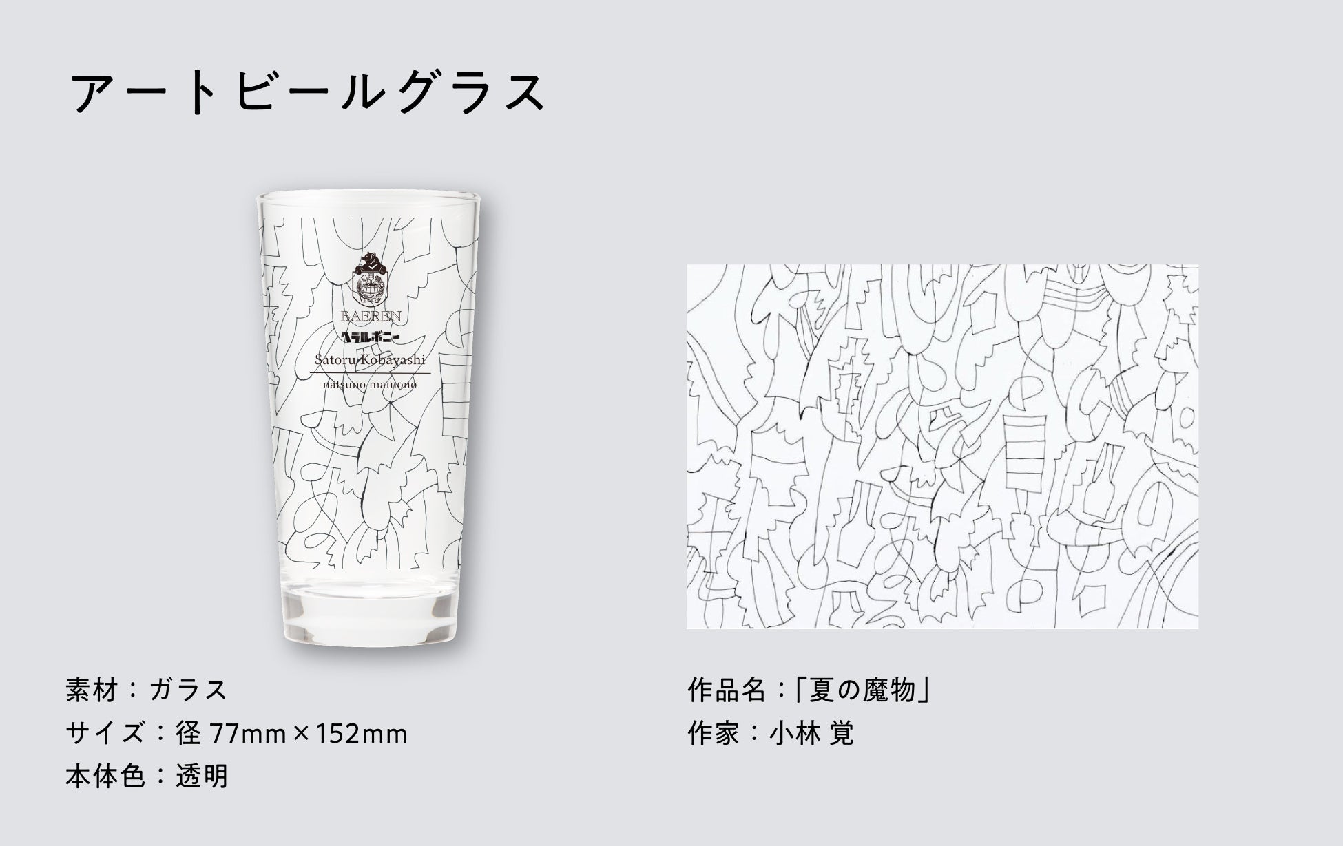 今回、ビールのラベルには、岩手県花巻市の「るんびにい美術館」のアトリエに在籍する岩手県出身の作家、小林覚氏の「Let It Be」と「雨ニモマケズ風ニモマケズ」の2作品をデザインに起用しています。また、リターン品の関連グッズには、同じくるんびにい美術館の作家である八重樫季良氏の作品がアートコースターやグラウラーなどのデザインに起用されています。