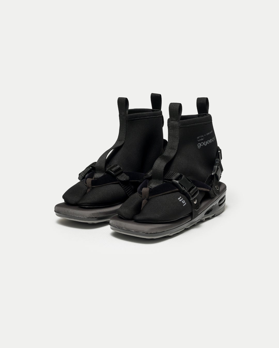 古来から日本に伝わり、伝統的な要素である、雪駄、足袋、雪駄止め。これらを goyemon が独自の解釈でアップデート。雪駄と足袋が一体型となった全く新しいフットウェアが誕生しました。