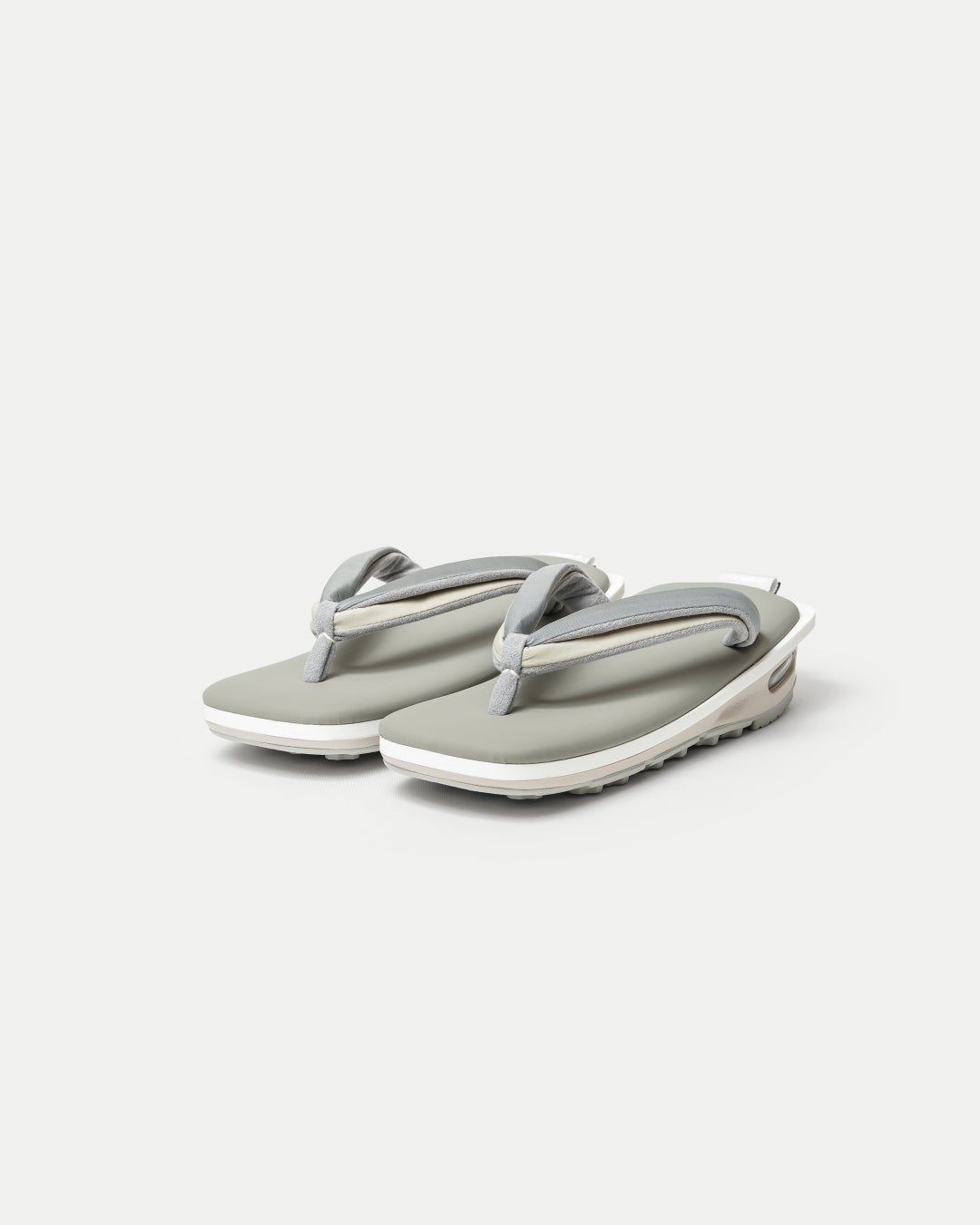 月面をイメージし、雲の上を歩くような軽さをさらに超える履き心地を目指し開発された定番モデル。ミッドソールのつま先から踵までエアユニットが搭載されているのが特徴。フットベッドには耐久摩耗性に優れた生地を採用し、鼻緒にはUltrasuede®を使用した上質な仕様に。カラーは3種。BLACKとSUMIは継続で、今季新たにOKAMIがリニューアル。25ssでは鼻緒の高さを再設計し、より快適な履き心地へと磨きをかけました。