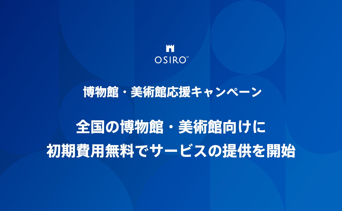 「日本を芸術文化大国にする」をミッションとし、コミュニティ専用オウンドプラットフォーム「OSIRO」を提供するオシロ株式会社(本社:東京都渋谷区、代表取締役社長:杉山 博一、以下 当社)は、2025年3月末までのお申し込みに限り、全国の博物館(美術館や動物園、水族館、植物園、科学館等)向けに初期費用無料で「OSIRO」のサービス提供を開始いたします。なお、本キャンペーンの実施にあたり、博物館のご担当者さまを対象にキャンペーン内容や博物館向けのオンラインコミュニティ運営に関する説明会の開催も予定しています。
