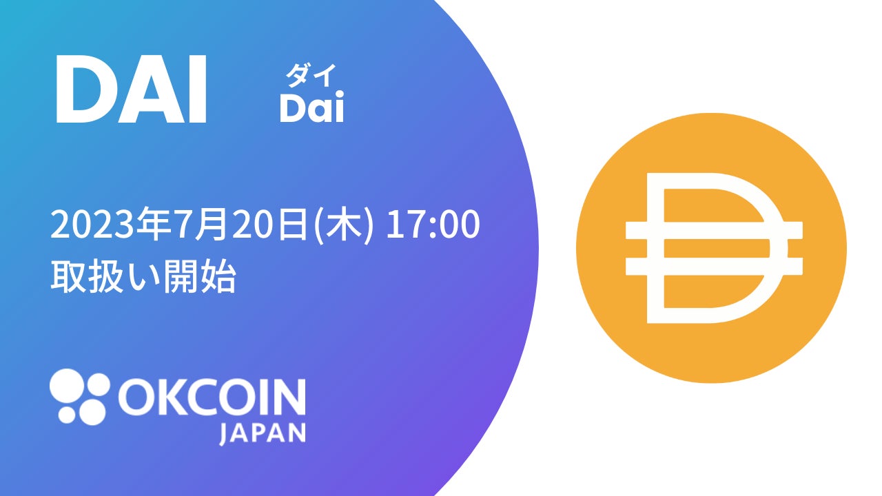 当社は、OKCoinJapan(暗号資産取引所)にて、『ダイ(DAI)』を、2023年7月20日(木)に取り扱い開始することをお知らせいたします。これにより、OKCoinJapanは、26種類の暗号資産を取り扱うこととなります。