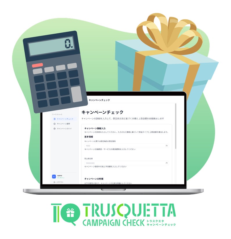 本ツールは、WEB上で無料かつ簡単に、景品の上限金額を計算できる仕組みになっており、手軽にご利用いただけます。