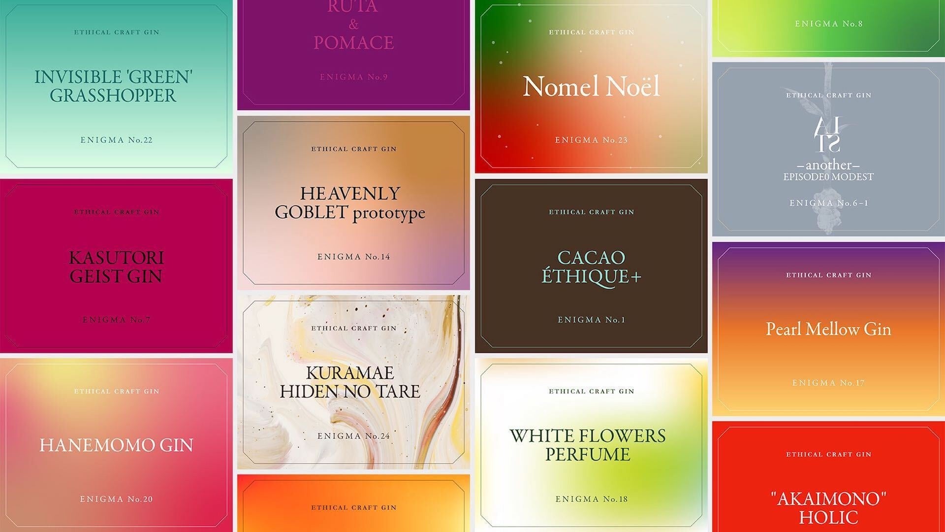 『ENIGMA』とは、暗号機「enigma」から名を冠しており、複数のローターが複雑に絡み合い無数の暗号を生み出す様に、「ベーススピリッツ」、「ボタニカル」、「蒸留方法」、「蒸留家」が複雑に関係し合い、無数のスピリッツを生み出す本シリーズの開発の在り方を準えています。
