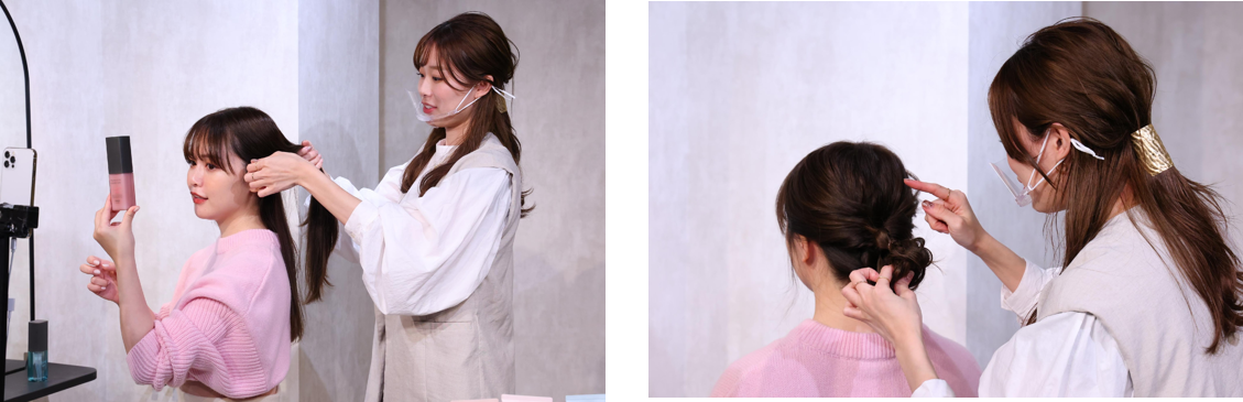 ■AYAMARがカラーヘアをきれいにキープするポイントを紹介!なめらかヘアを活かした「みつあみお団子アレンジ」も生披露!