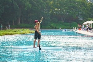 また、夏のウォータースポーツの新定番「SUP(Stand Up Paddleboard)」をお楽しみいただけるプログラム「SUPクルージング」も週末とお盆休み期間限定で提供します。「SUP」は、サーフボードの上に立ちパドルを漕いで水上を進む、夏らしい爽快感あふれるアクティビティです。「SUPクルージング」では、インストラクターがパドルを使って上手に漕ぐ技術を丁寧にレクチャーするので、初心者でも安心してご参加いただけます。