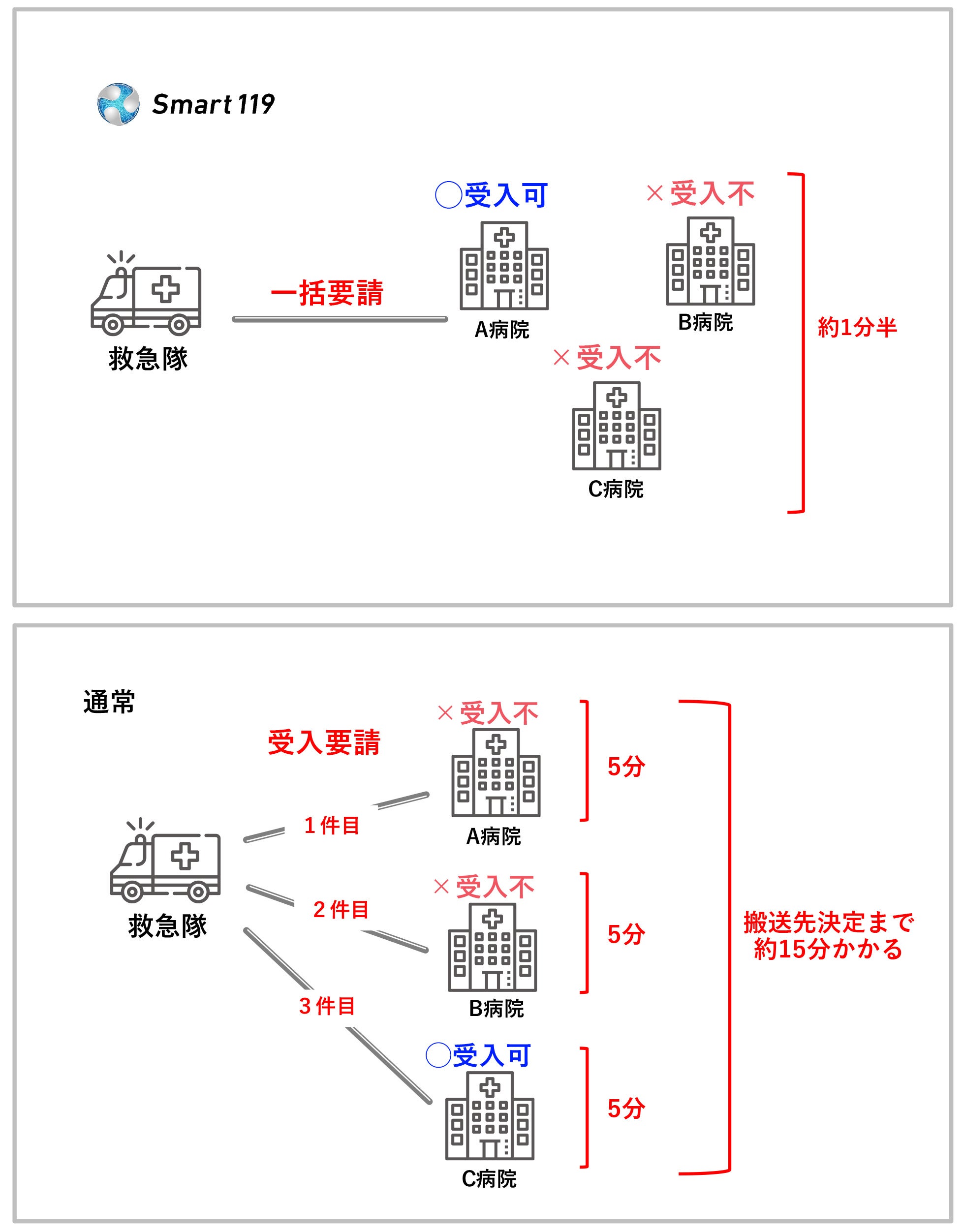 ※この実証実験についてのご質問やお問い合わせは株式会社Smart119にご連絡ください。