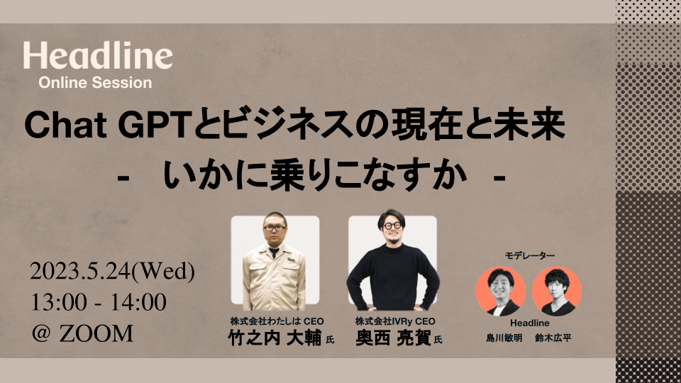電話DXのIVRy代表・奥西がHeadline Asiaと開催する無料オンラインセミナー「ChatGPTとビジネスの現在と未来 -いかにして乗りこなすか- 」に登壇決定!