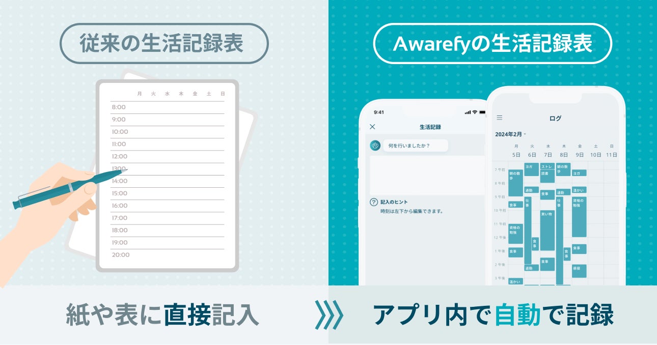 AI メンタルヘルスアプリAwarefyに、復職支援にも活用できる生活記録表機能をリリース