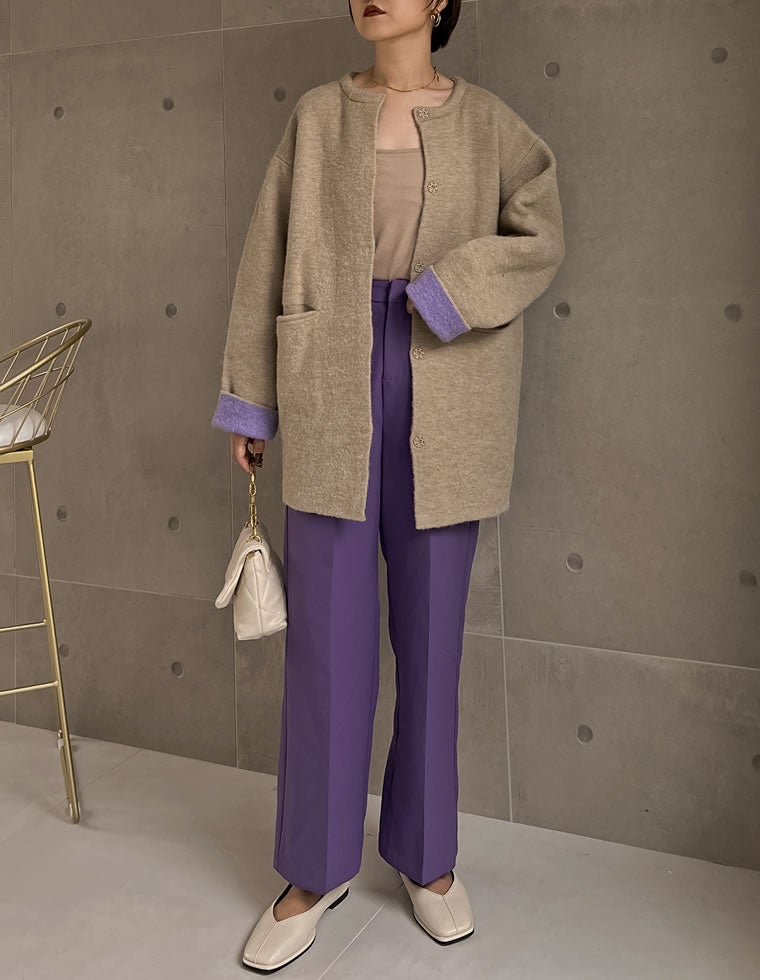 2022年カラー・オブ・ザ・イヤーとして、数多くの人気ブランドのランウェイでも注目を集めたベリーペリ。クールな印象と暖かさの両方を兼ね備えた上品な青みパープルです。クールな印象のあるベリーペリは、トップスに取り入れてもモードな印象に。ボトムで取り入れるだけで、エレガントさをプラスしてくれる2023年秋の大注目カラーです。