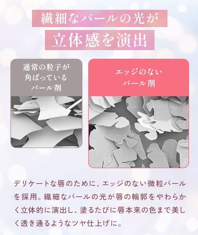 唇本来の色を美しく見せる色味と、さりげないラメ感を取り入れ、さらに皮むけ防止ケアを意識した設計に加え、美容成分を30種配合するなど、ケアとメイク性を両立した点が特長となっています。