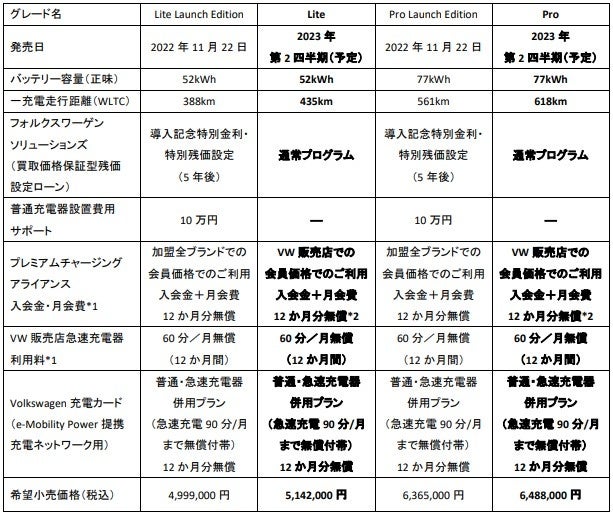*2: VW販売店以外の加盟店にて月額会員価格での充電器ご利用には、別途入会金および月会費が必要となります。このプレスリリースには、メディア関係者向けの情報があります
