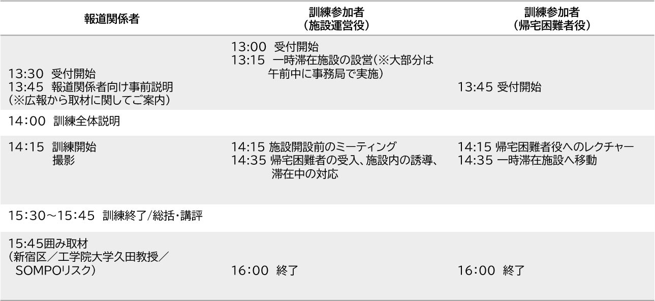 新宿駅周辺防災対策協議会(一時滞在施設運営訓練事務局:SOMPOリスクマネジメント株式会社、工学院大学および新宿区)は、地域の事業者と協力し、帰宅困難者一時滞在施設運営訓練(以下「一時滞在施設運営訓練」)を2月13日(木)に東急歌舞伎町タワーで実施します。