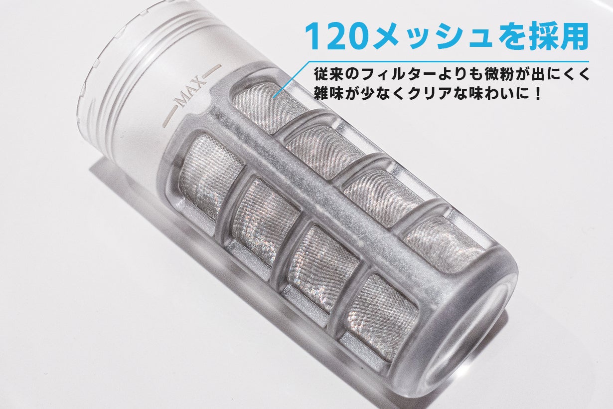 ・クリアが味わいを実現する細かいメッシュ(120メッシュ採用)
