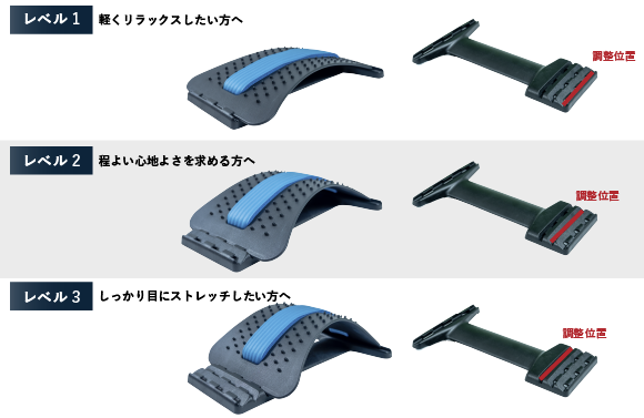 - 背中をしっかり伸ばせる!プロの「ひっぱり感覚」のストレッチが自分1人で行えます。