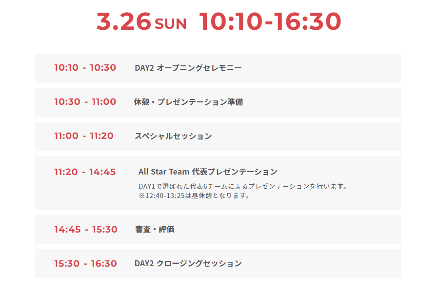 <出場プロジェクト/当日プログラム/審査員/表彰内容など>
