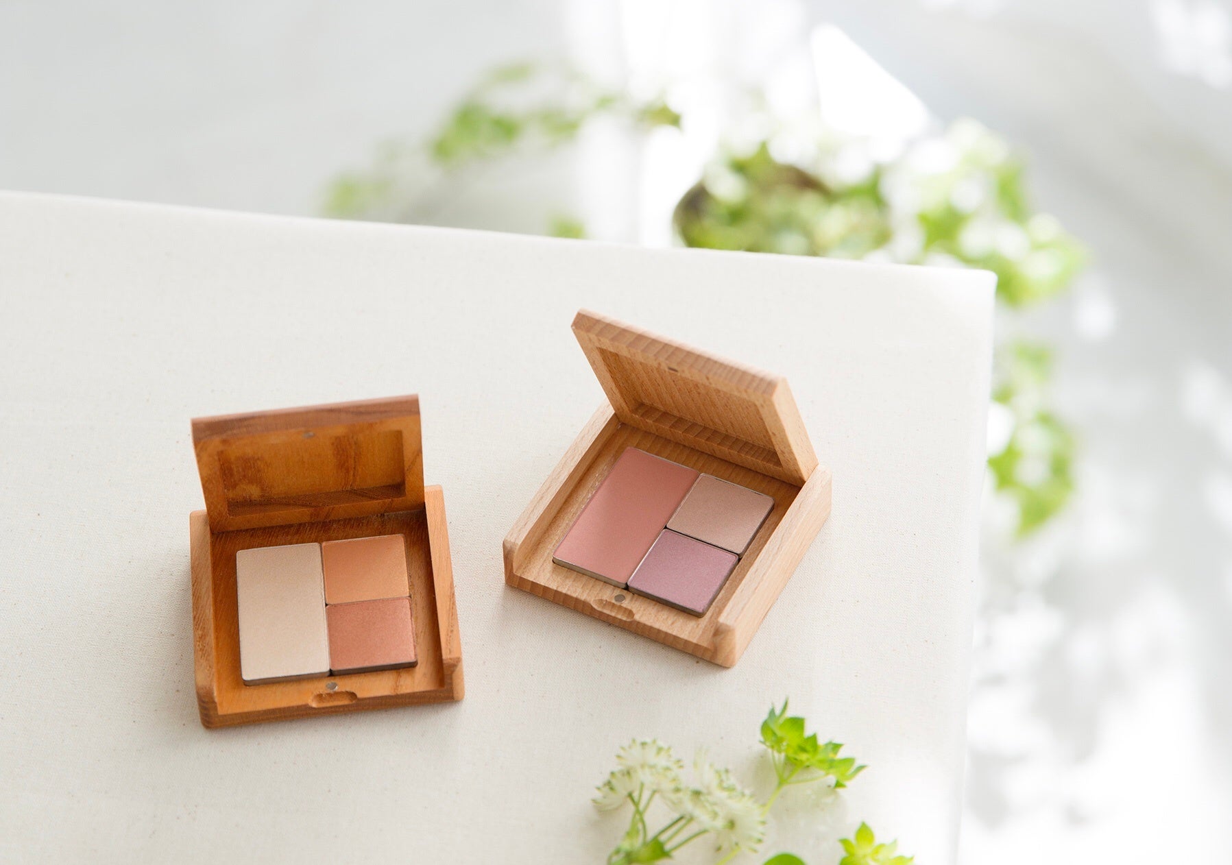 天然木の無垢材を使ったカラーメイクパレットはやさしいぬくもりが感じられ、使うことが思わず嬉しくなるほど。環境にやさしい製造方法とパッケージを用いています。