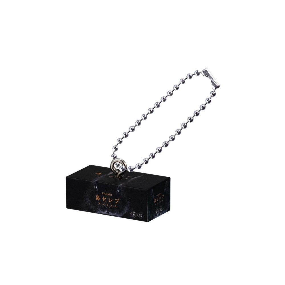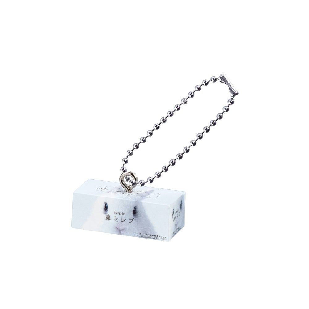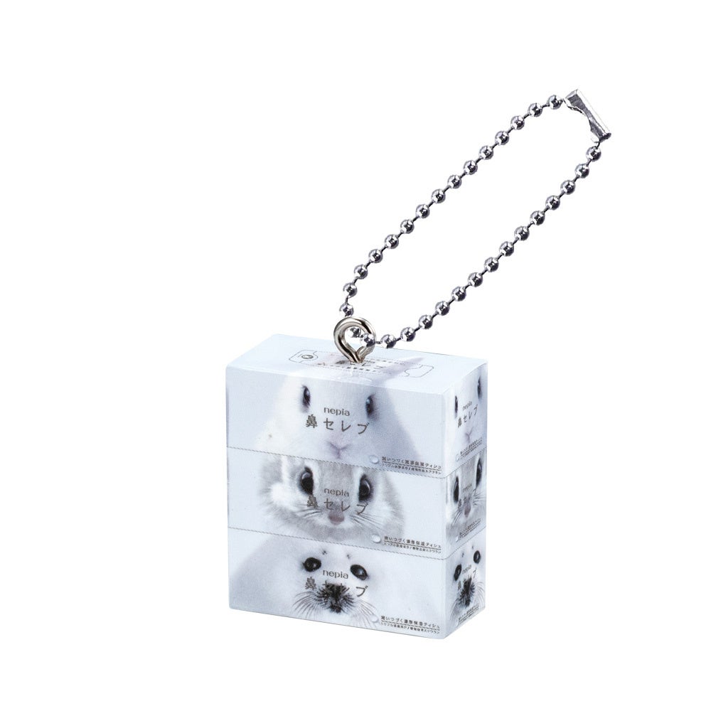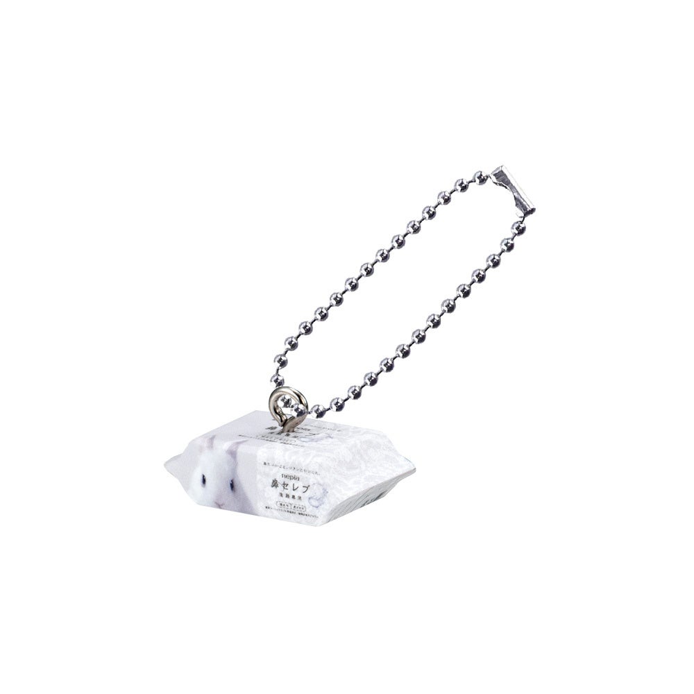 本商品は、王子ネピア株式会社の「ネピア ⿐セレブシリーズ」のパッケージデザインを全高約8mm~45mm(ボールチェーン及びヒートン含まず)のサイズで再現したミニチュアチャームです。ラインナップは、定番の「鼻セレブティシュ3コパック」「鼻セレブティシュ ネザーランドドワーフ」、高級感のある黒うさぎデザインが特徴の「鼻セレブティシュ プレミアム」、カバンに入れやすいようスマートに設計された「鼻セレブティシュ ITSUMO」、水回りでのご使用に安心なソフトパックパッケージの「鼻セレブ 洗顔専用」、淡いブルーとネザーランドドワーフの後ろ姿がかわいい「おしりセレブ」の全6種。ミニチュアサイズながら、動物のかわいらしいデザインや、パッケージの質感をしっかり再現しています。
