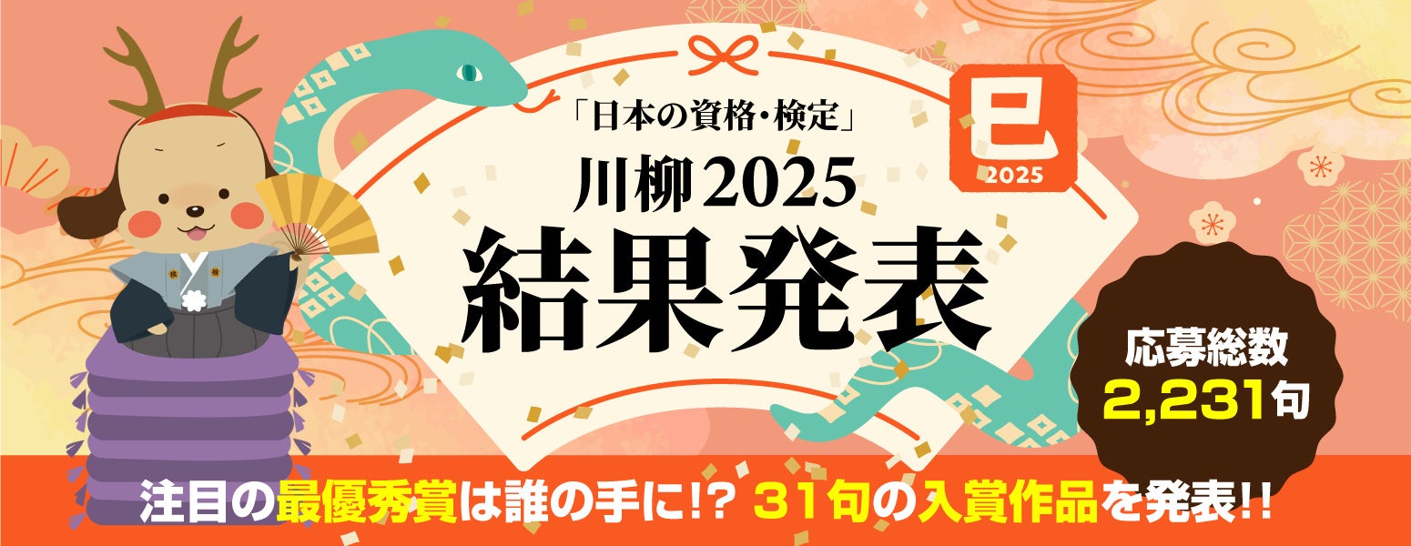 今年も『「日本の資格・検定」川柳』にたくさんのご応募をありがとうございました。 昨年に引き続き応募作品数が2,000を超え、悩みに悩んで入賞作品を決定させていただきました。