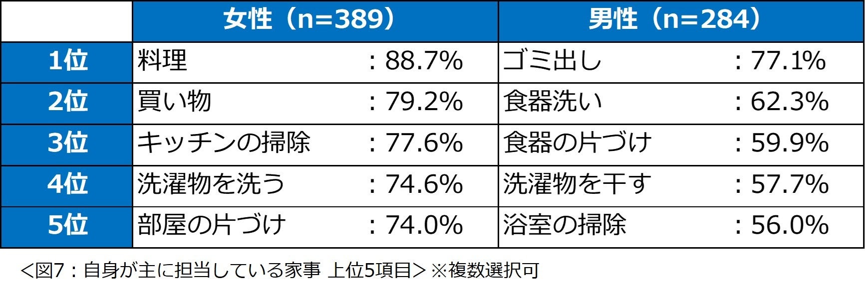 2位「食器洗い」、3位「食器の片づけ」と続きました。(図7)