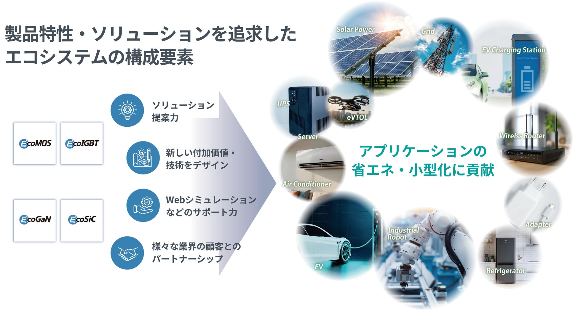 ロームは、これら4つの製品群を「Power Eco Family」とし、アプリケーションの性能向上に寄与することで、エコシステムの構築に貢献していきます。