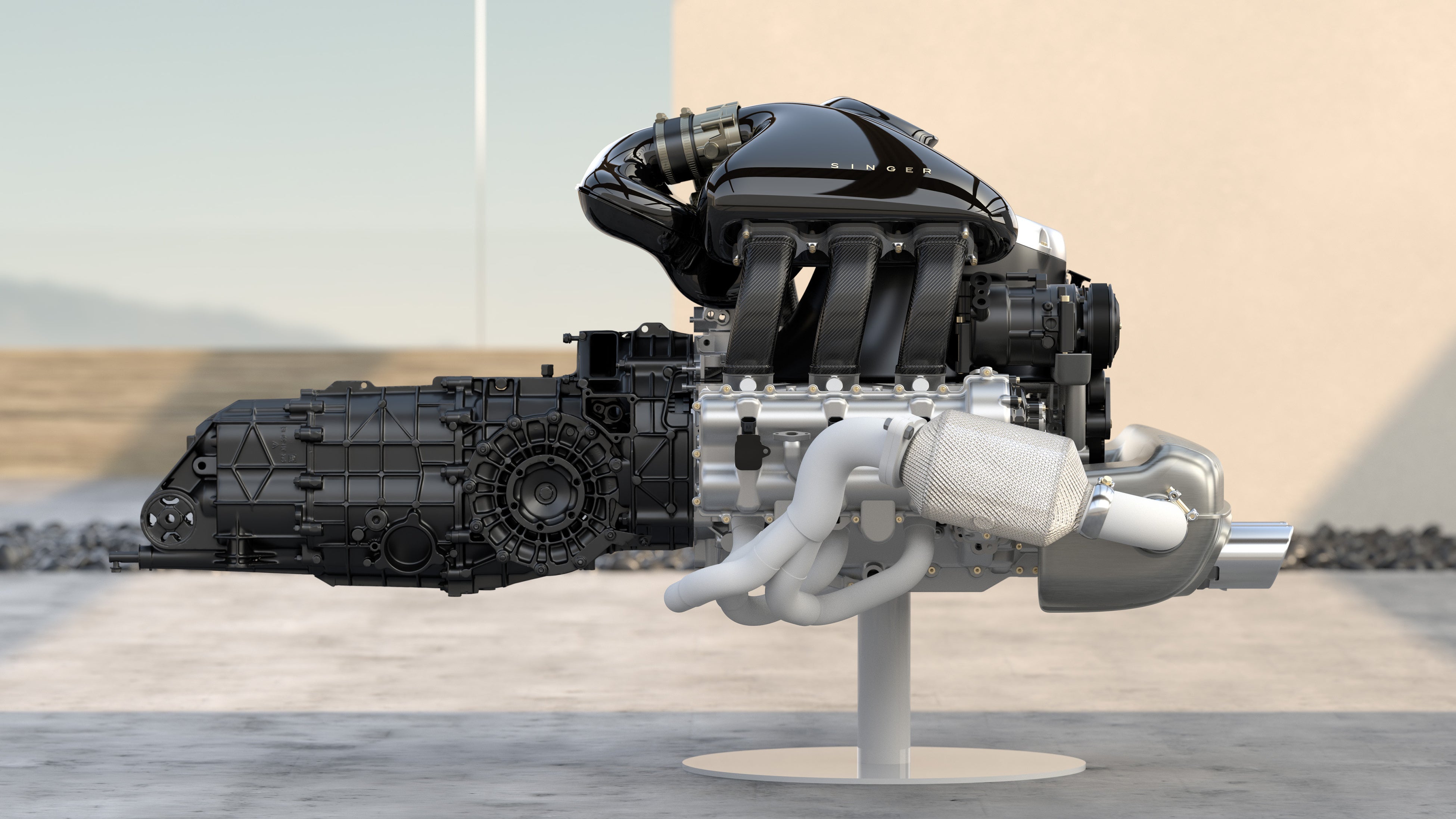 シンガーの最新サービスは、コスワースのエンジニアリング協力を得て開発した、最高出力420馬力の自然吸気水平対向6気筒エンジンを搭載。