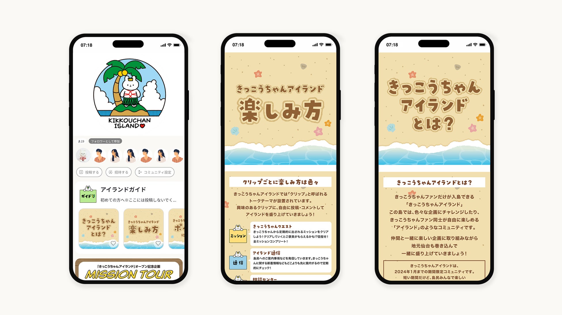 「きっこうちゃんアイランド」では、きっこうちゃんのファン同士の交流や、コミュニティメンバーのみが参加できる企画、作者のバチコさんからのコミュニティ限定発信など、特別な体験をお楽しみいただけます。