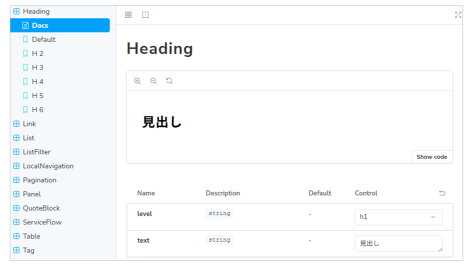 ドキュメントサイト側で示す原則・スタイル・仕様と、Storybookの実装コンポーネントを対応づけることで、「ルールはあるが実装が追いつかない」「実装は進むが仕様が更新されない」といった分断を防ぎます。 -