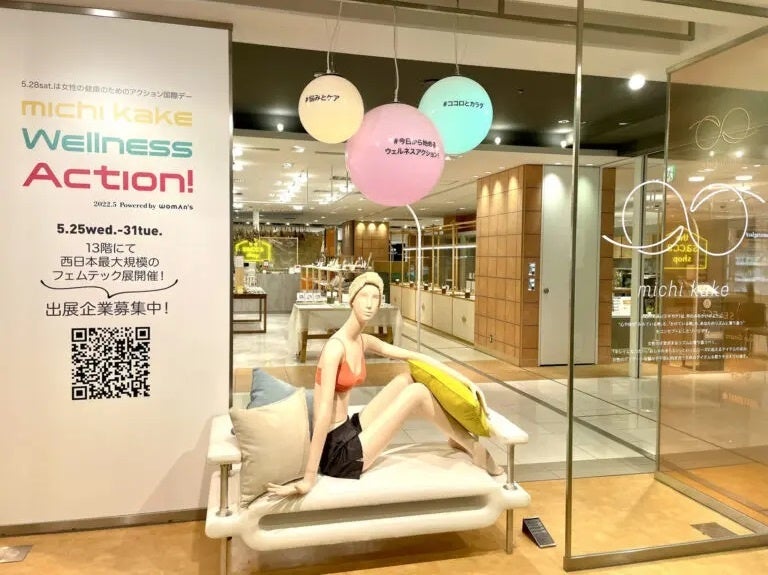 このたび当社は、「大丸松坂屋百貨店 大丸梅田店ミチカケ」と「ウーマンズ」の、「女性特有の様々な健康問題を解決したい」という強い思いに共感し、出展に至りました。女性は日々多くのリズムに囲まれ、家庭や仕事、友人との付き合いなど周りに合わせることを優先し、なかなか自分の時間を作ることができなかったり、さらにホルモンバランスの乱れなどの影響もあり、こころとからだが不安定になりやすい傾向にあります。当社は、このような女性特有のお悩みを解消すべく、女性のリズムを整える無料オンラインイベントを開催したり、YouTubeで心身と深い関わりがある月のリズムに合わせた体操動画を公開するなど、女性のセルフケアを後押ししています。