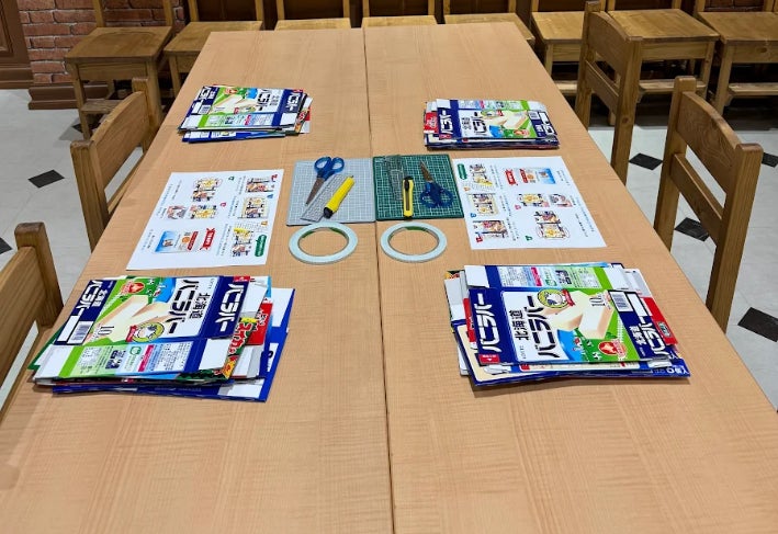 通常は捨てられてしまうパッケージを素材として再利用し、楽しみながら新たな価値を生み出すサステナブルな体験を提供。ものづくりの楽しさに触れながら、資源を大切にする意識を育む機会となります。