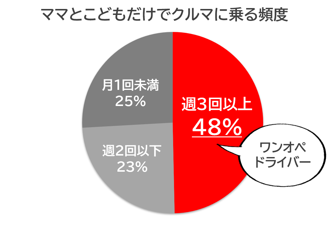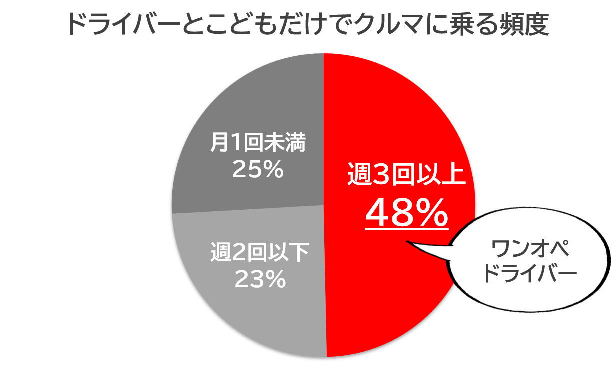 ①約5割が週に3回以上、こどもとだけでクルマに乗っていると回答。