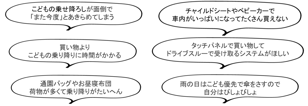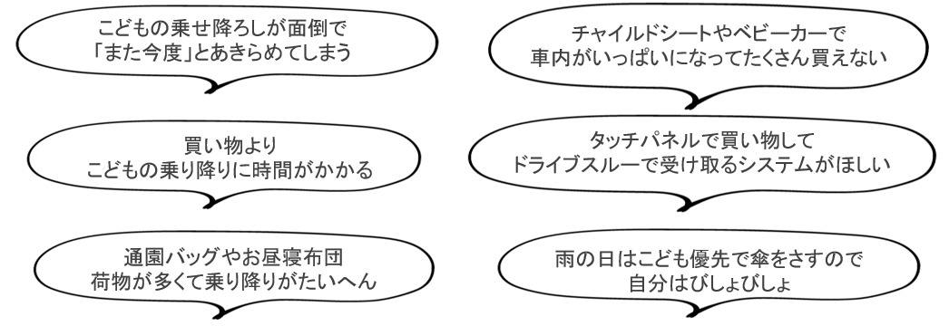 ワンオペドライブになりがちなタイミングは「買い物」、「通院」。