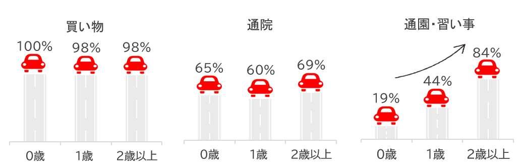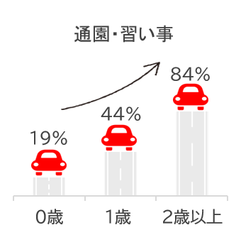 また、こどもが2歳以上なると「通園・習い事」での使用シーンが急増。