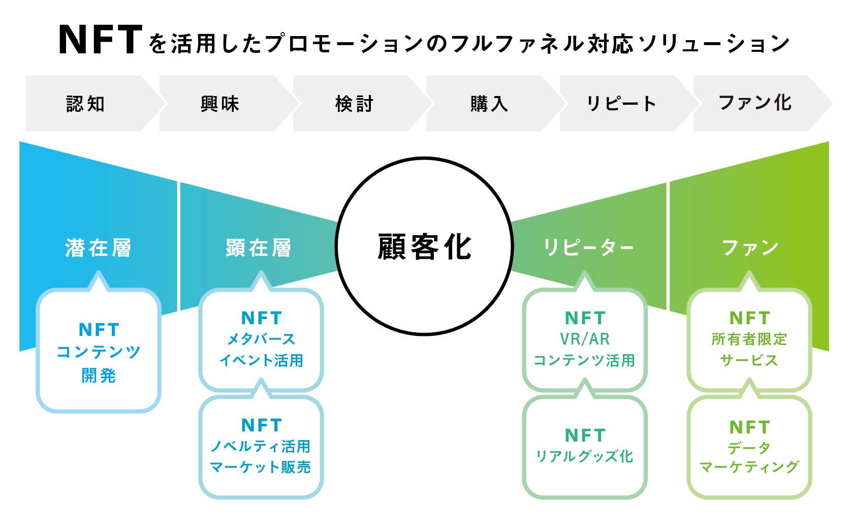 Web3.0時代の到来により、NFT(Non-Fungible Token)に注目が高まり、新たな経済圏への企業の対応が急務となっている現在、NFTの発行だけでは期待する効果が得られず、いかに生活者とのエンゲージメントを高めるかが重要となります。そこで、当社では、総合制作事業会社の強みを活かし、さまざまなNFTコンテンツ開発を支援するNFT Promotion Lab™をスタートいたします。このNFT Promotion Lab™は、メタバース空間やVR/ARプロモーションなどのデジタルコミュニケーションに加え、ノベルティやポイントコレクトキャンペーンへの活用など、NFTコンテンツを核にしたプロモーションで、認知フェーズから顧客ロイヤリティ向上までフルファネルで支援するソリューションです。