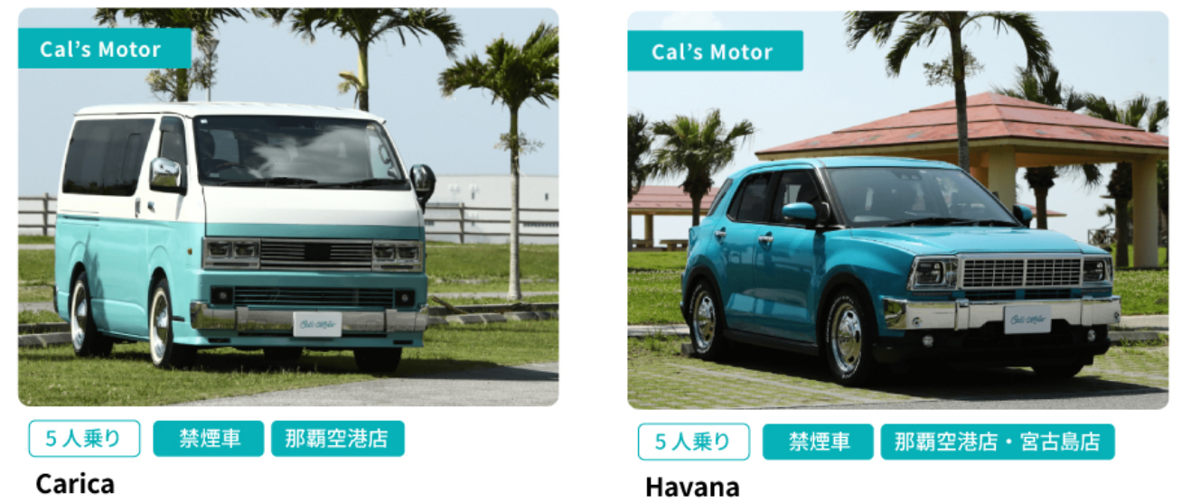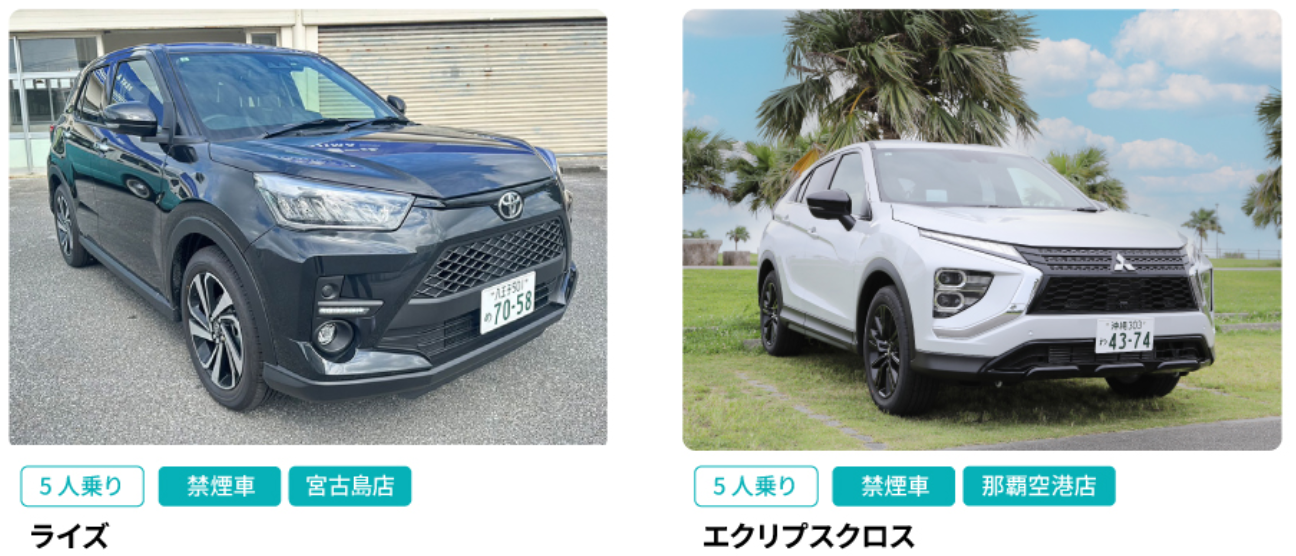 那覇空港店と宮古島店との2拠点で展開するレンタカーサービス。