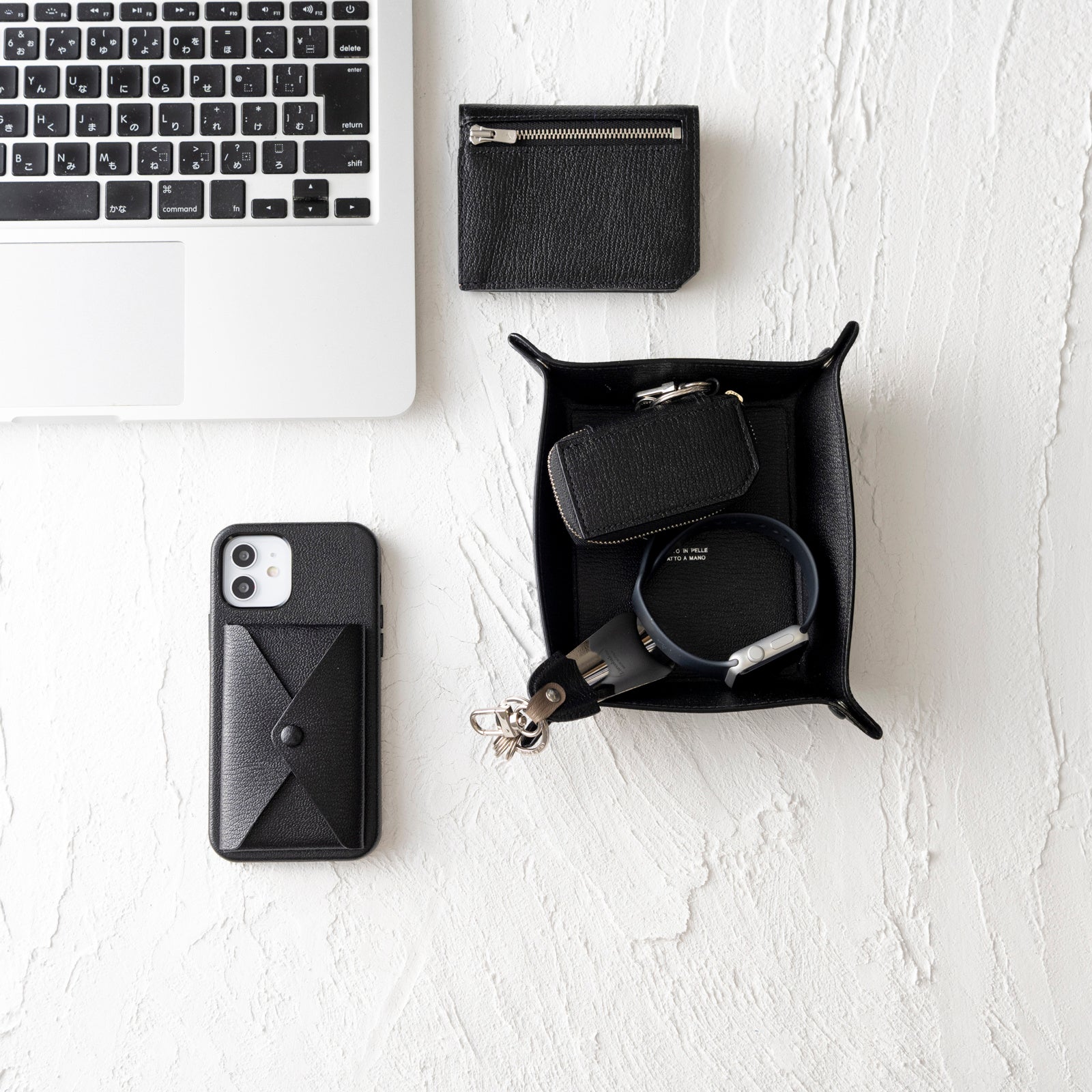 廃棄予定のレザーを使用した計8色のキーホルダーは、L’arcobalenoらしい発色の良さをお楽しみ頂けます。