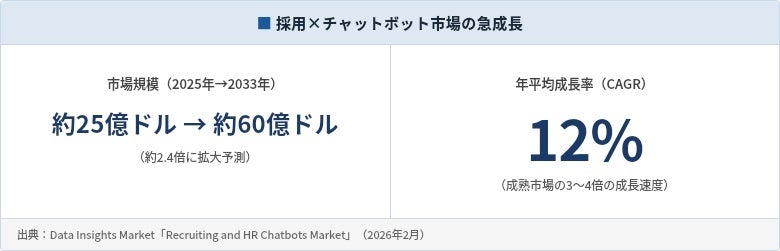 グローバルでは、採用特化型チャットボット市場が急拡大しています。