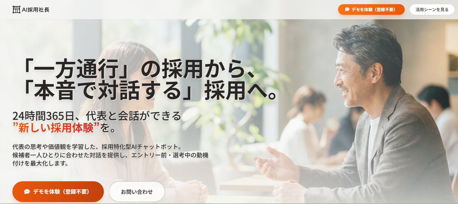 『AI採用社長』は、代表の思考や人格を学習させることで、この「見えない検討フェーズ」での離脱を防ぐために生まれました。「読む」より楽に、「会う」より気軽に。