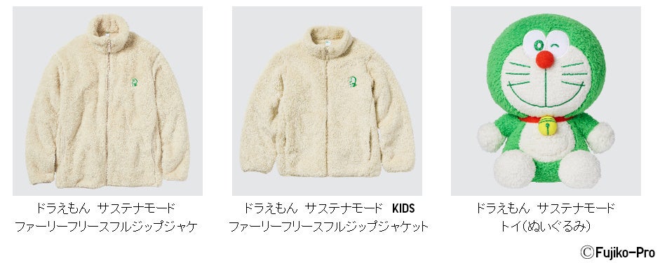 ユニクロは、「JOIN:THE POWER OF CLOTHING」プロジェクトの2023年秋冬キャンペーン開始に伴い、リサイクルポリエステル素材を使用した、ユニクロのグローバルサステナビリティアンバサダー「ドラえもん サステナモード」の新デザイン、「ドラえもん サステナモード トイ(ぬいぐるみ)」と「ドラえもん サステナモード ファーリーフリースフルジップジャケット」を10月6日(金)から、全国のユニクロ店舗およびユニクロオンラインストアで販売します。「ドラえもん サステナモードトイ(ぬいぐるみ)」は、生地にリサイクルポリエステルを100%使用したフリース素材で作られています。「ドラえもん サステナモード ファーリーフリースフルジップジャケット」は、ぬいぐるみ同様に、生地にリサイクルポリエステルを100%使用し、「ドラえもん サステナモード」が胸元にワンポイント入った着やすいデザインになっています。なお、ユニクロの「ドラえもん サステナモード」コレクションは、今回がラストコレクションとなります。