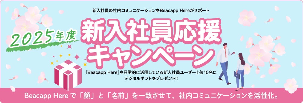 屋内位置情報サービス累計導入社数No.1※1の「Beacapp Here」を提供する株式会社ビーキャップ(東京都港区、代表取締役社長 岡村 正太、以下「ビーキャップ」)は、2025年4月1日より、新入社員(入社1年未満)で「Beacapp Here」を日常的に活用して頂いているユーザー上位10名を対象に、毎月デジタルギフト500円分をプレゼントする「新入社員応援キャンペーン2025」を開始することをお知らせ致します。
