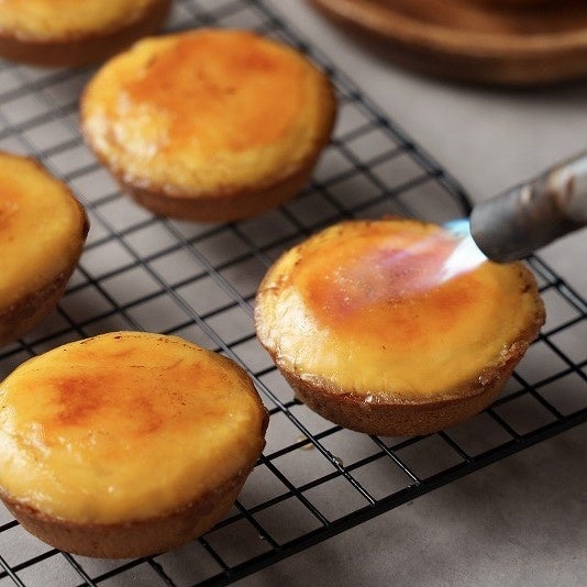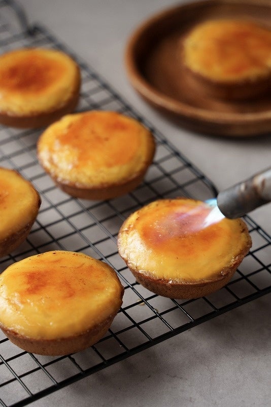 プリンがタルトになった、新感覚の焼きプリンタルトです。表面はパリッと、中にはクリーミーでなめらかなカスタードプリンが入っています。タルトはアーモンド生地を使用し、香ばしい味わいに仕上げました。ご注文後、その場でキャラメリゼして仕上げるため、出来立てのブリュレを味わえます。