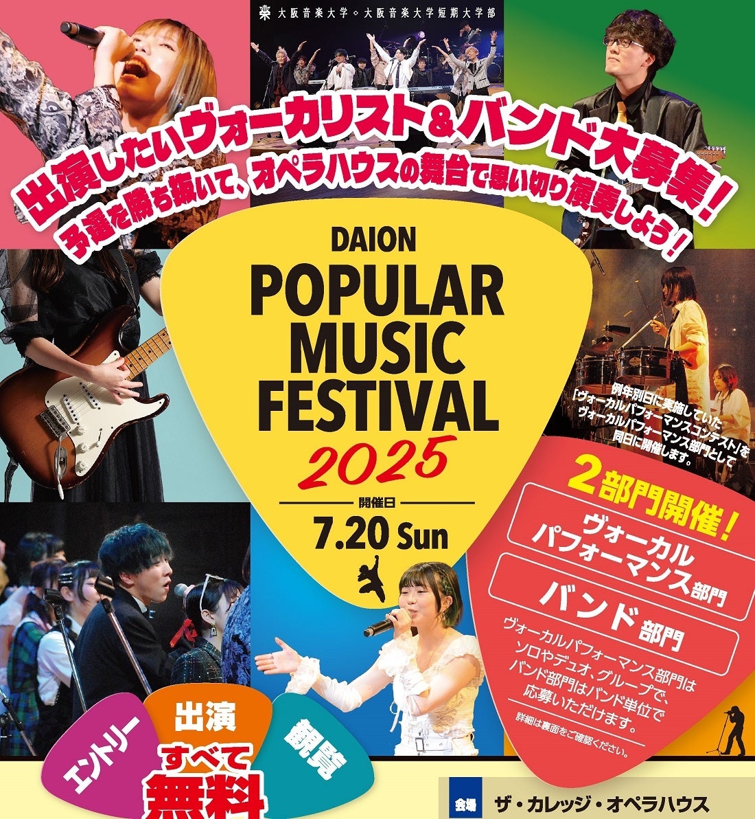 大阪音楽大学(所在地:大阪府豊中市、学長:森本友紀)では主に音楽関連の進学を目指す高校生を対象としたイベントを、2025年7月・8月に複数開催します。