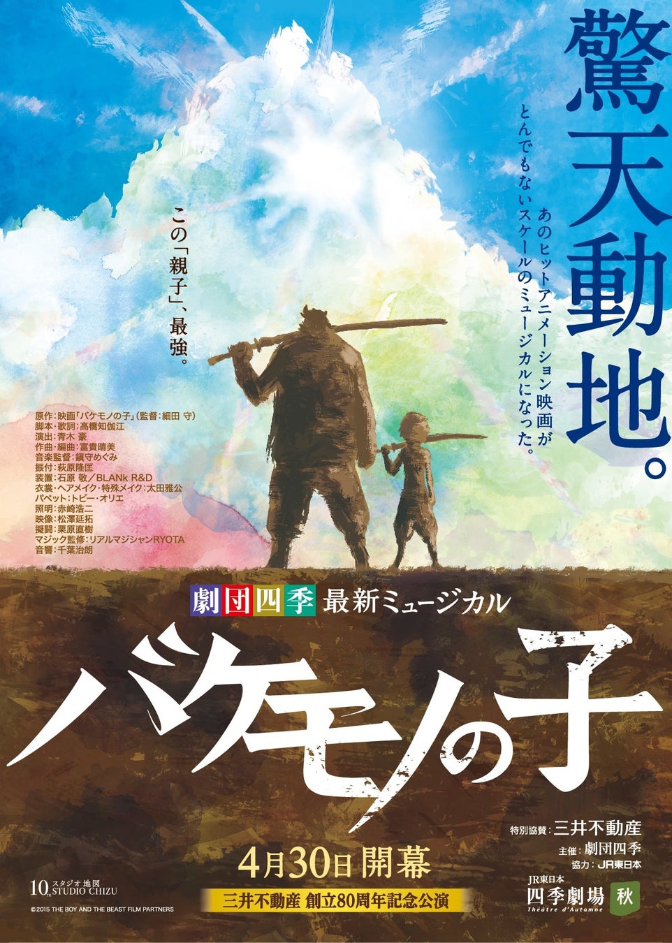 スタジオ地図作品のミュージカル化は本作が初。この『バケモノの子』で、劇団四季は国産ミュージカルとして最大級の長期上演に挑みます。