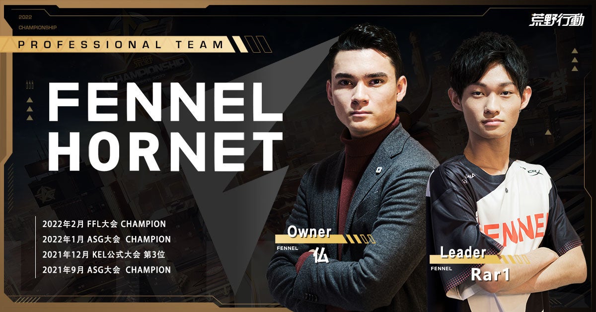 「FENNEL Hornet」荒野プロチーム宣言動画:https://youtu.be/4Tx1dY2X6yI