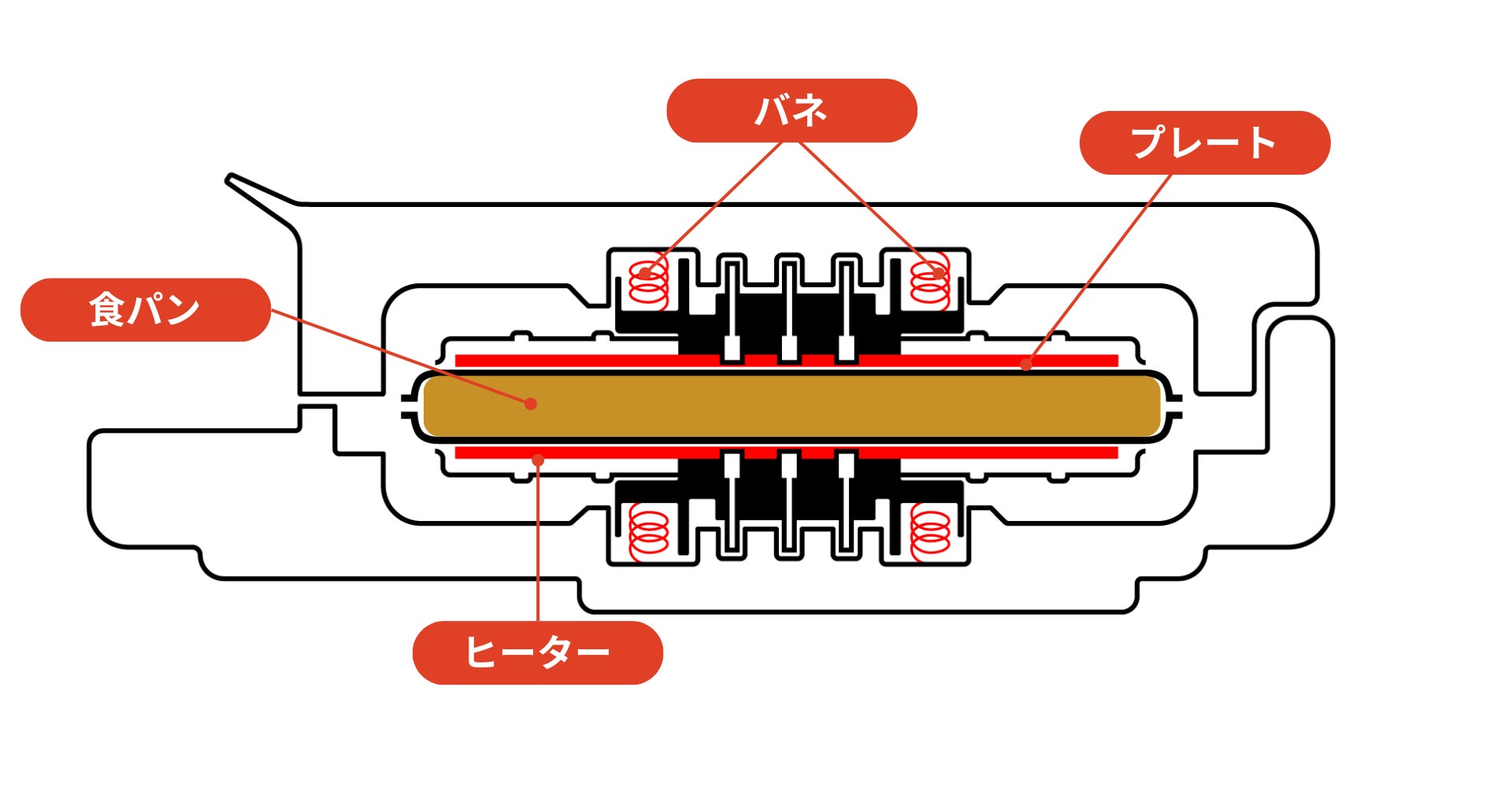 ■食パンをプレスしすぎない、ふわふわプレス構造