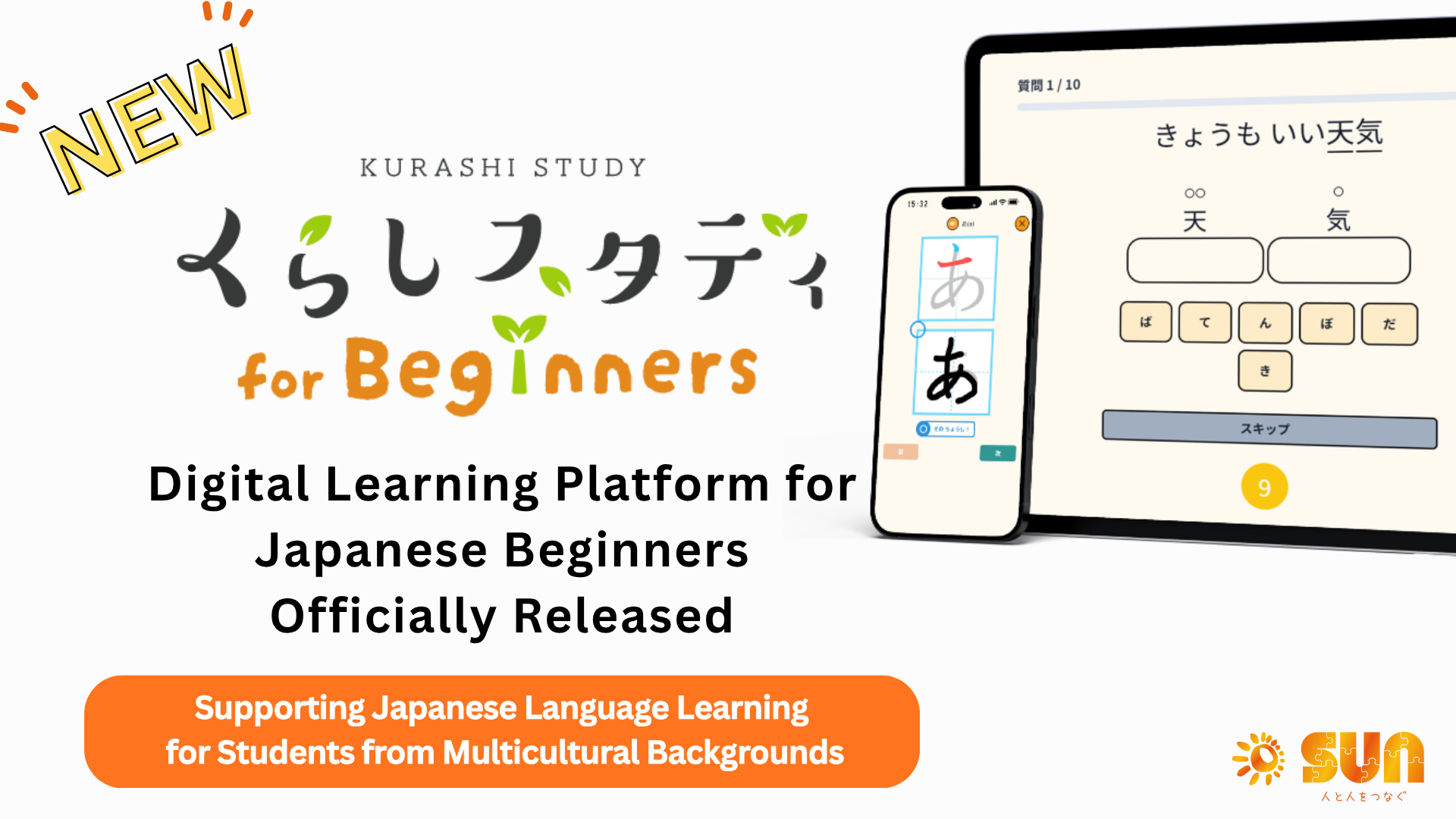 SUN株式会社(本社:東京都港区、代表取締役社長兼CEO:仲宗根俊平、以下SUN)は、2025年10月10日(金)より、日本語ビギナー向けデジタル学習教材「くらしスタディ for beginners」の提供を開始いたしました。