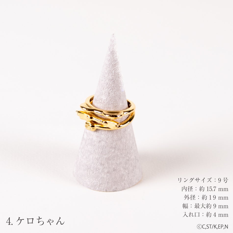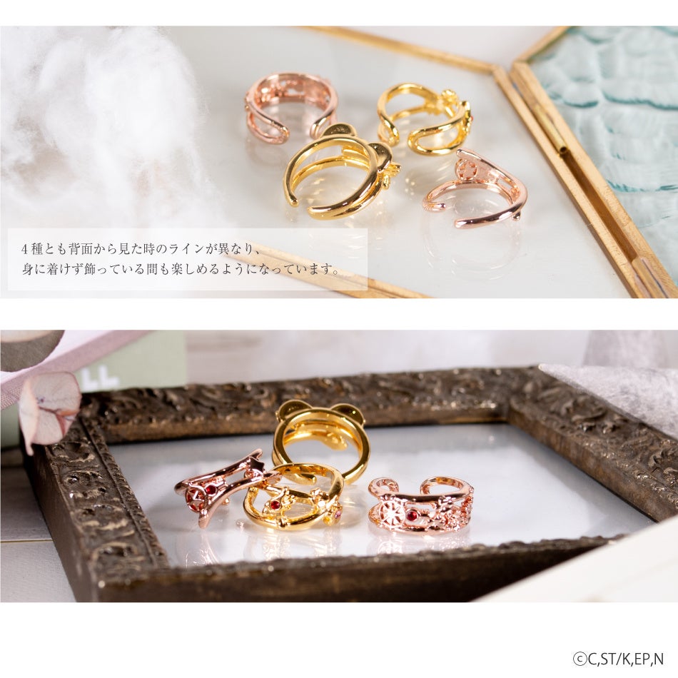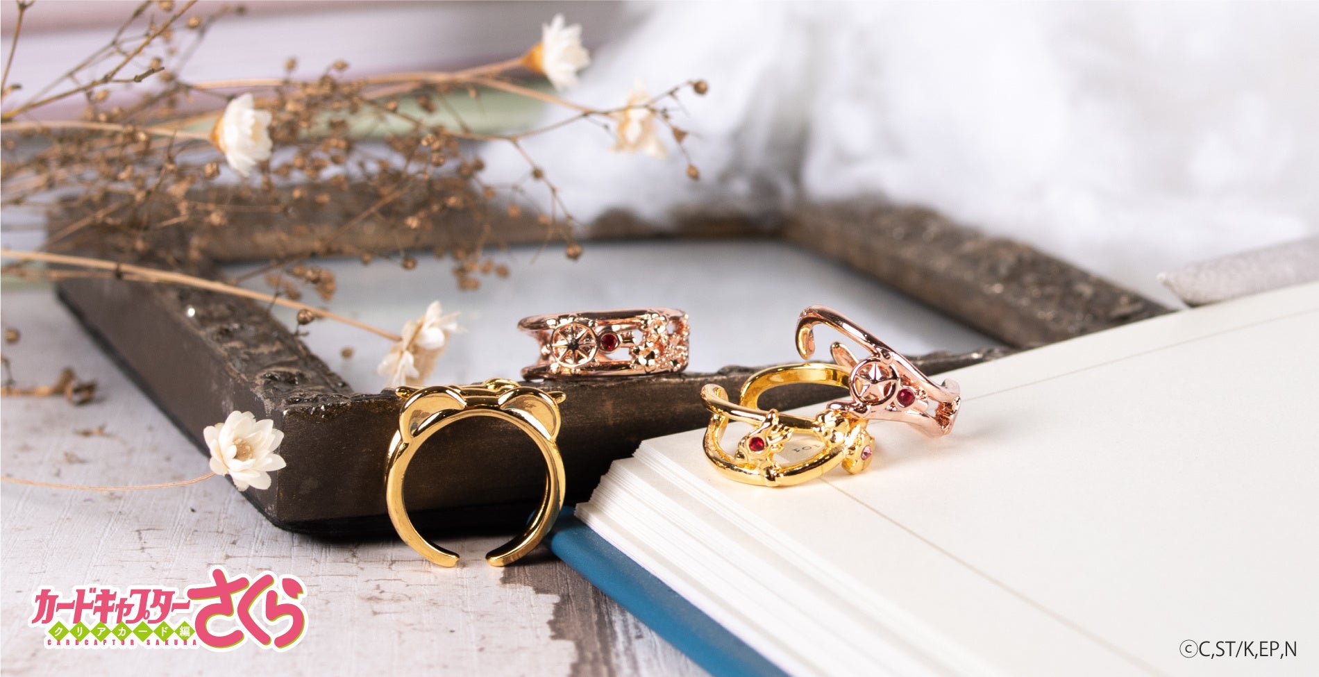 カードキャプターさくら クリアカード編 より 各シリーズの鍵をあしらったリングカフが登場。リングサイズは基本9号となっており、お手元である程度の調整をしていただけます。ケロちゃんのデザインはどの角度から見ても立体的に見えるようになっており、耳、羽、しっぽと要素をふんだんに盛り込んでいます。普段使いにもおススメのカラーバリエーションとデザインになっています。