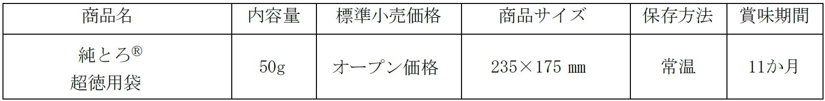 今回発売する「純とろⓇ 超徳用袋」は、従来品における「取り出す時に適量が出しにくい」といった不満点を改善した商品です。